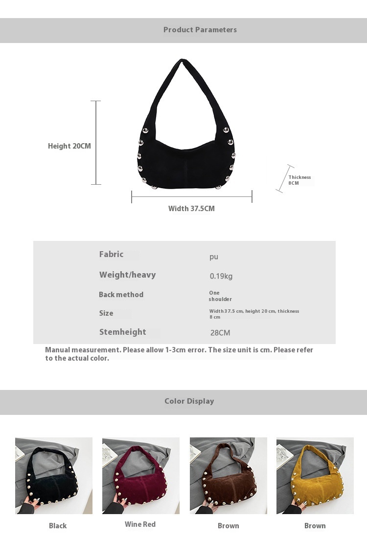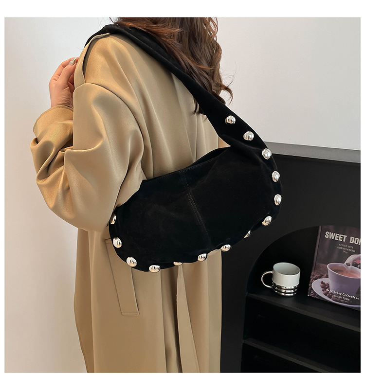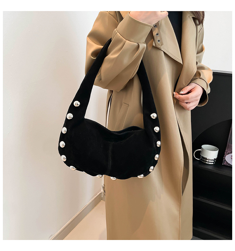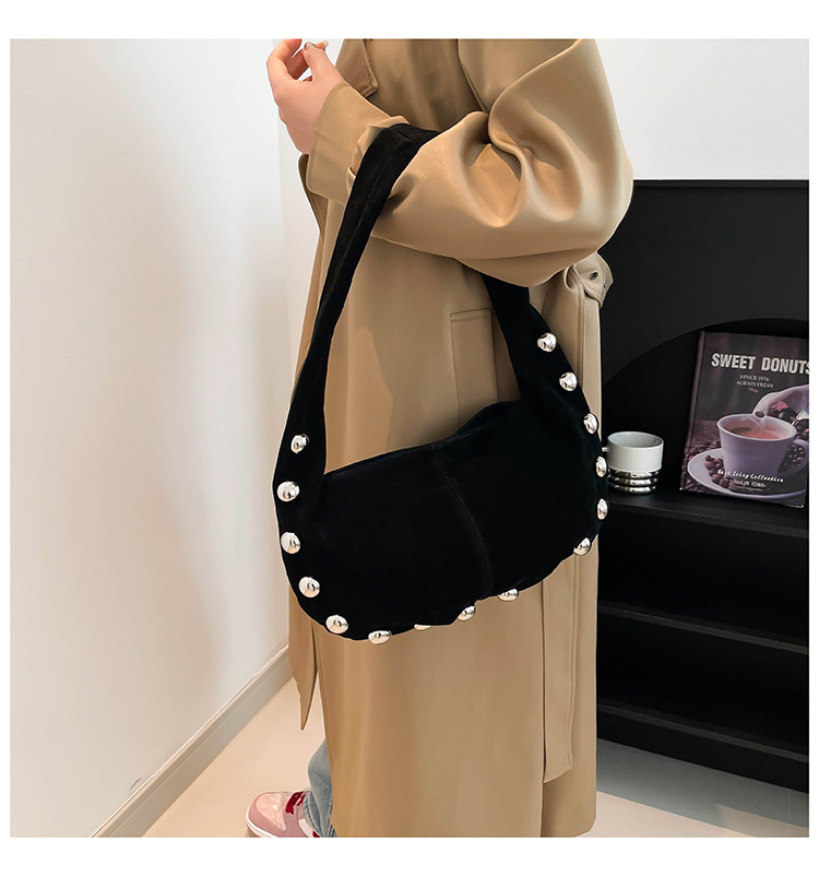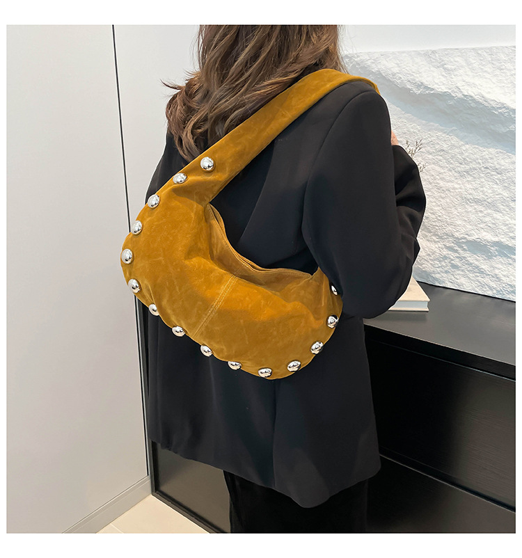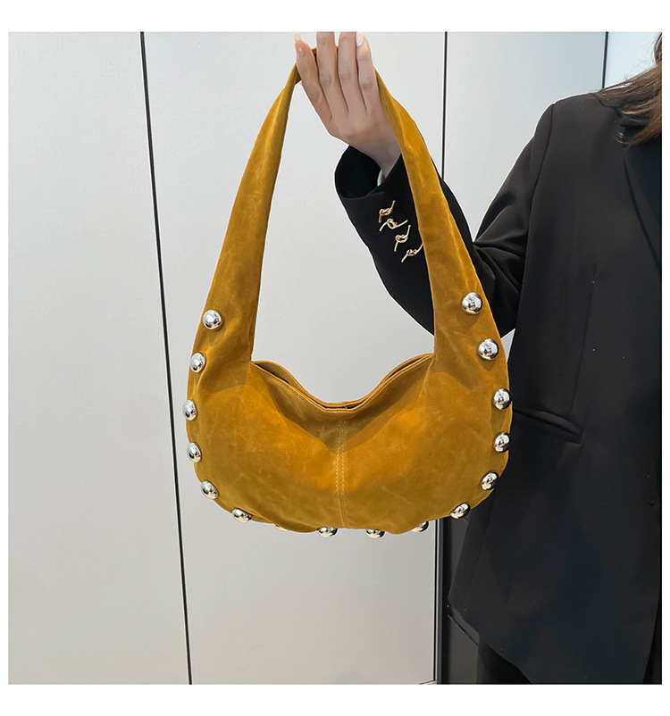 Alliez style et modernité avec ce superbe sac hobo en daim brun, orné de boutons métalliques argentés qui lui donnent une touche audacieuse et chic. Sa texture douce et sa forme souple apportent une allure élégante tout en restant décontractée, parfaite pour le quotidien comme pour une sortie stylée.