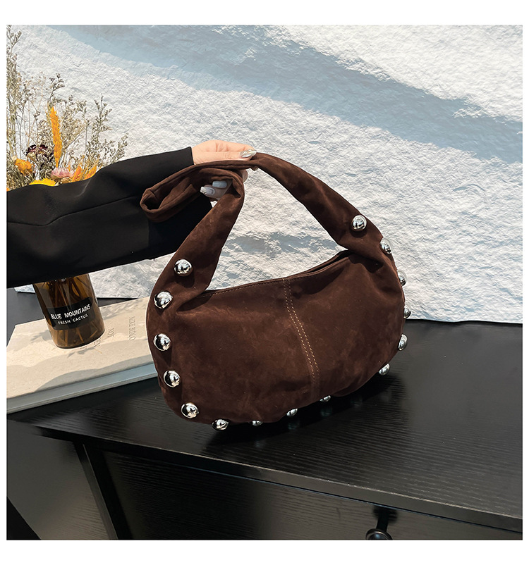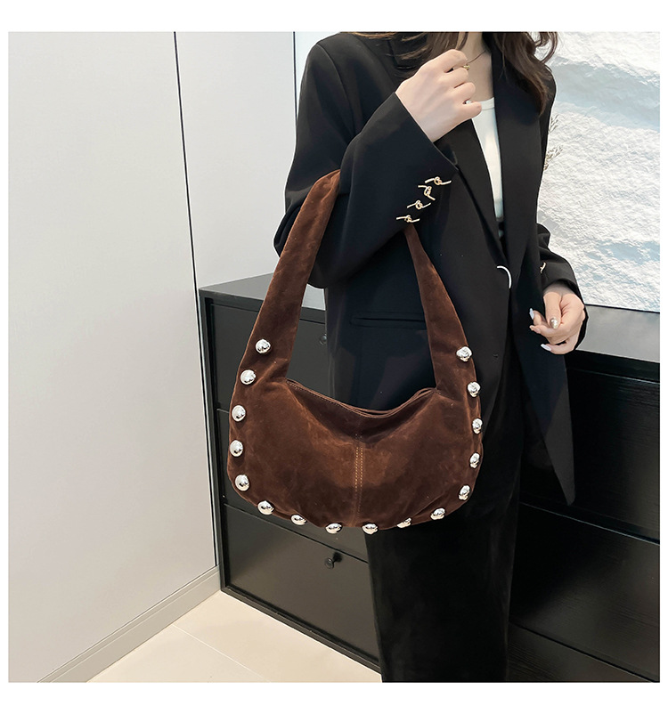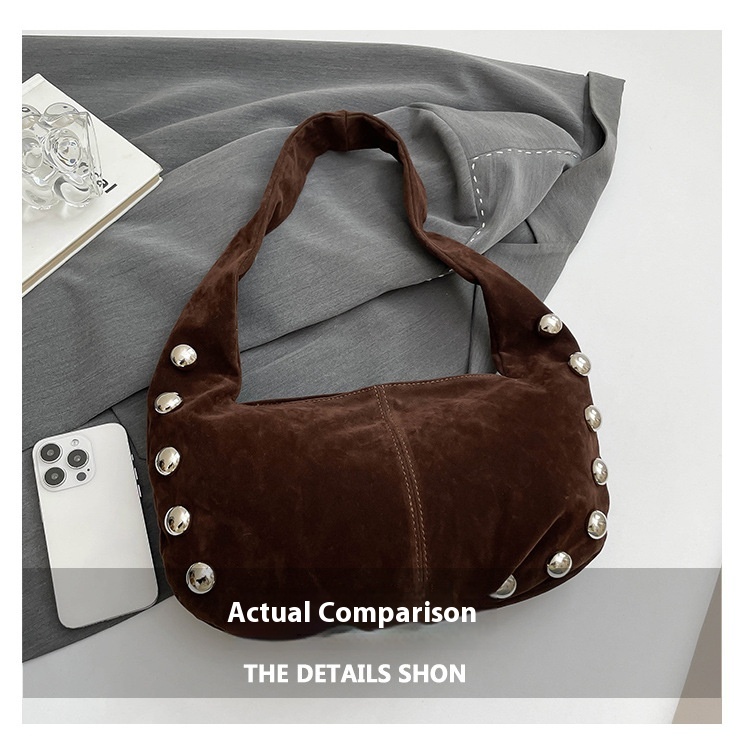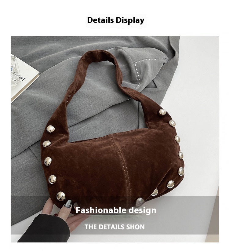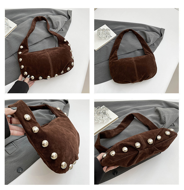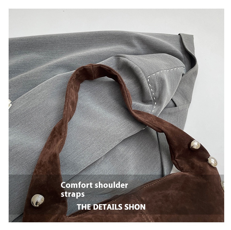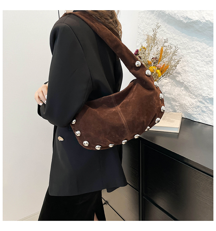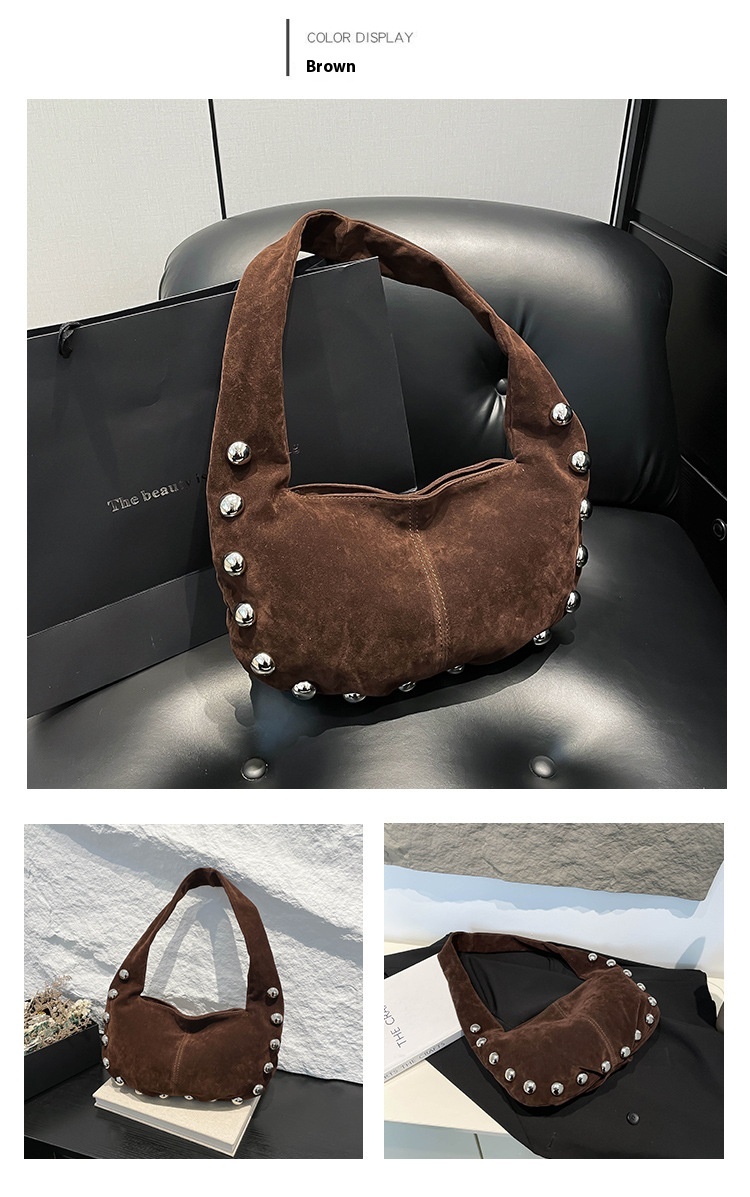 Sac Hobo en daim brun avec détails métalliques